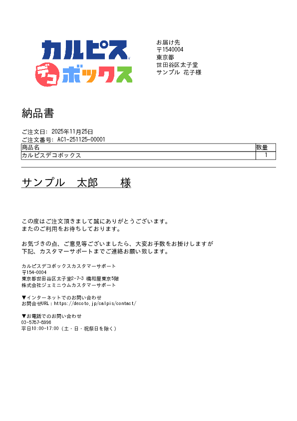 「カルピスデコボックス」以外の商品との同梱やまとめての配送は承っておりません。誠に恐れ入りますが、あらかじめご理解くださいますようお願い申し上げます。