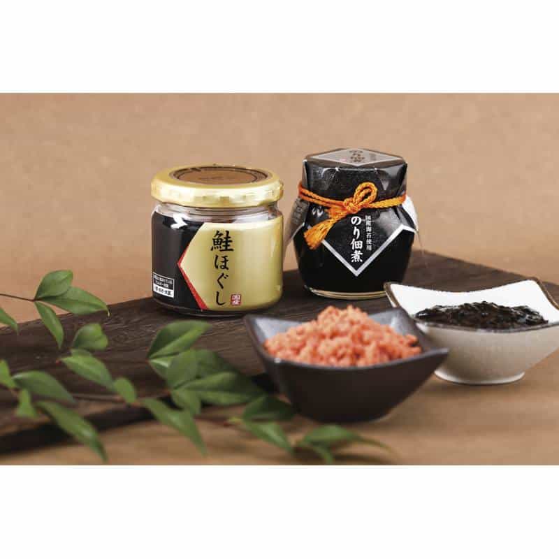 北海道産鮭のお茶漬けと甘海老のみそ汁などの詰合せです。