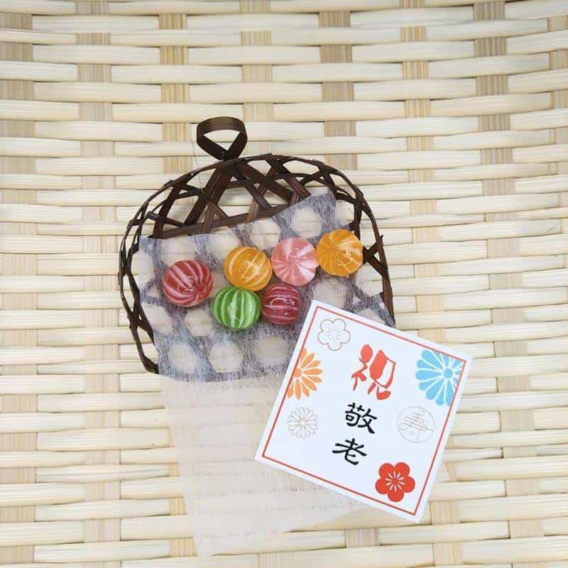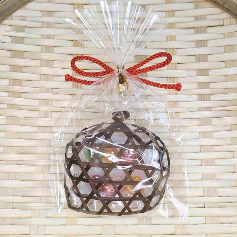 カラフルな手まりキャンディが入った昔ながらの和風デザイン小箱
