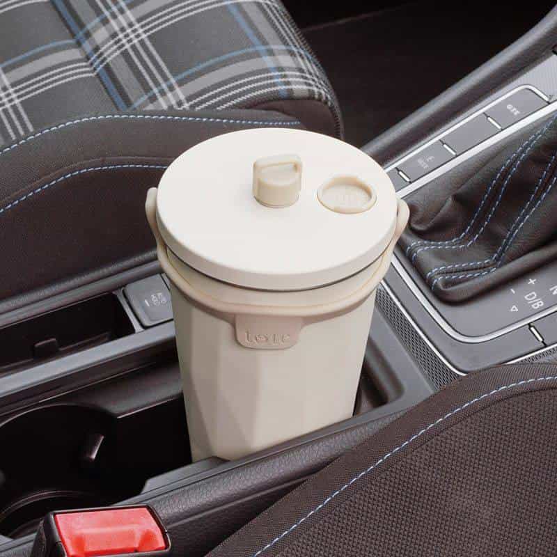 伸縮するストローつきの保温保冷ができるステンレスマグボトル。持ち運びに便利なシリコーン製ストラップ付。ストロー部分のキャップは蓋に置き場所があるのでなくしにくいです。