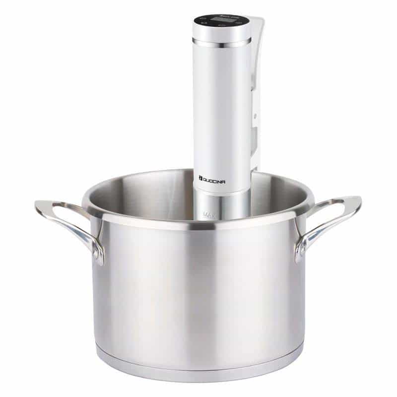 ご自宅で簡単にプロの調理法が再現できる低温調理器。タンパク質が凝固しない低温でじっくり加熱する事で、柔らかく、旨味成分を凝縮した調理が可能。長めのクリップを採用しており、浅めの鍋でもしっかり固定できます。タッチパネル式の操作で使いやすい。万が一に備えIPX7等級の防水性能。