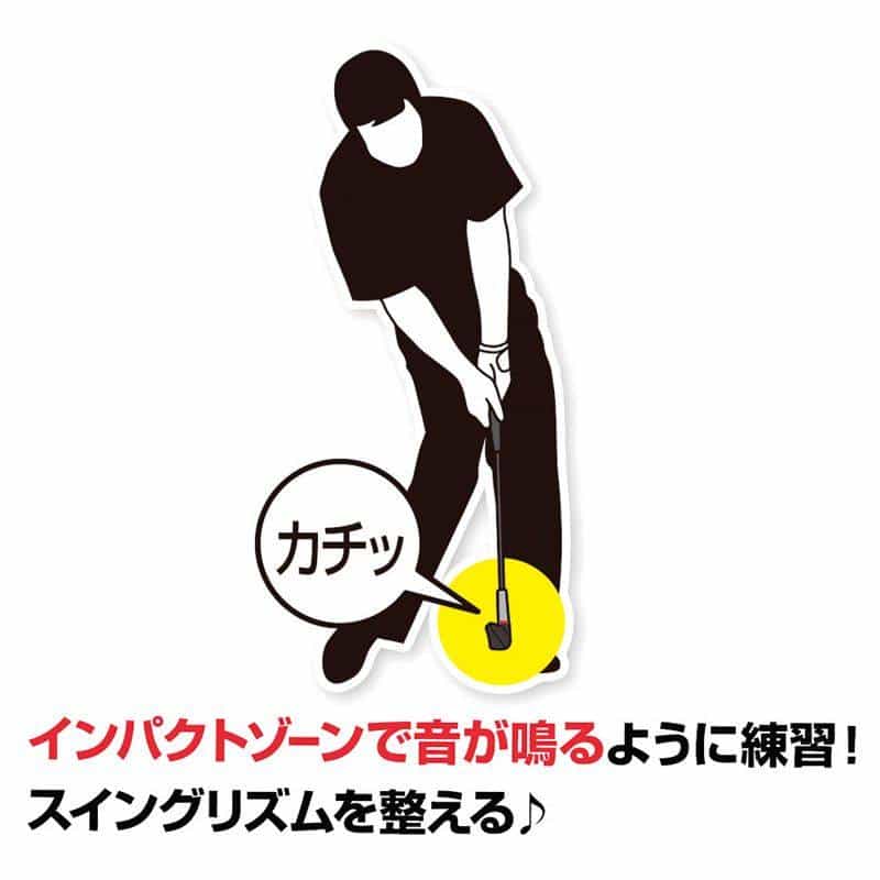 しなるシャフトで、スイングのリズムを整えつつヘッドの走りを体感。音「カチッ」が加速点を教えるので、スイング矯正にも使えます。7番アイアンのロフト角をした形状で、アームローテーションを確認しながらスイングも整えます。全長約75㎝で自宅で練習できるサイズです。構えたときにグリップが崩れない、程よくしなるシャフトです。