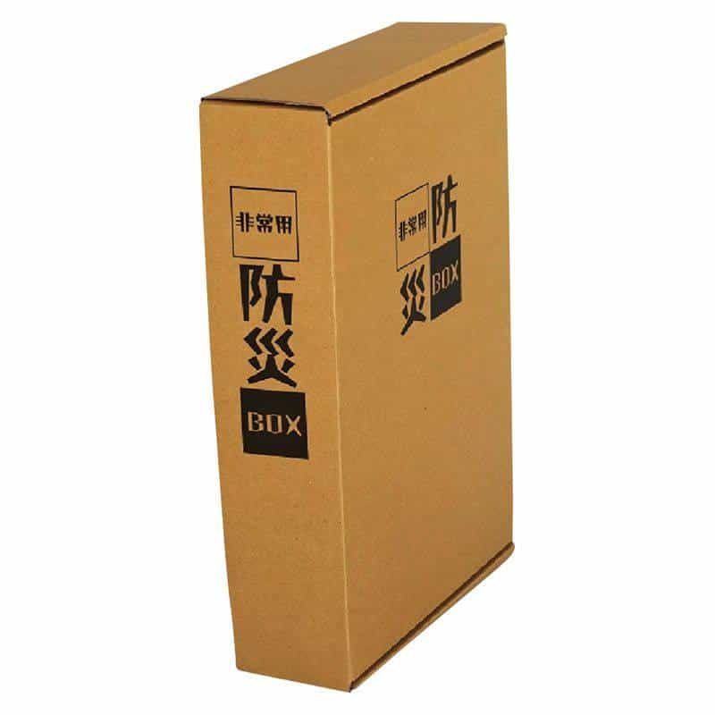 地震や台風など非常時の備えに。リュック型の非常袋を使用。箱がブック式なので棚やデスクの引き出しに保管出来ます。