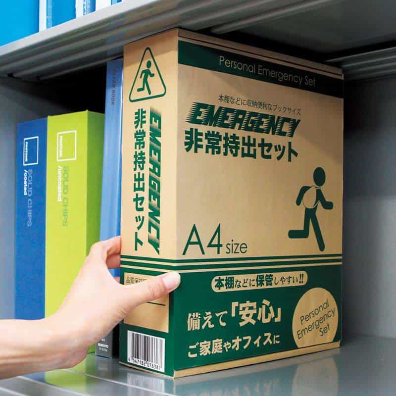 棚や引き出しに常備しやすい帰宅支援を意識したセット。A4収納箱タイプ。