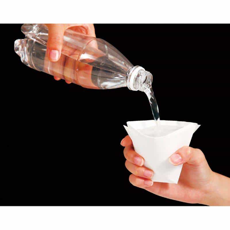 水に強いストーンペーパーを使用しています。コップや皿の折り方付きで、災害時に役立ちます。水洗い可能なので、繰り返し使えます。緊急時のメモにも。防災グッズ大賞2023アイデア賞受賞。