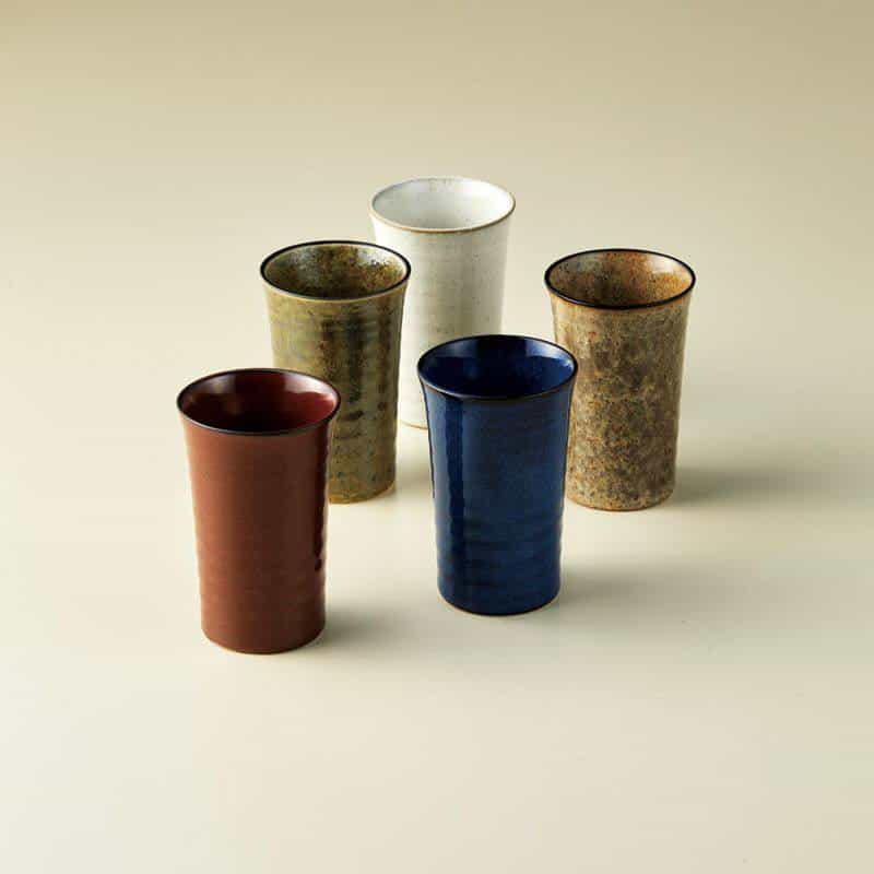 陶器のフリーカップ。波打った形状が持ち易く、手になじみます。