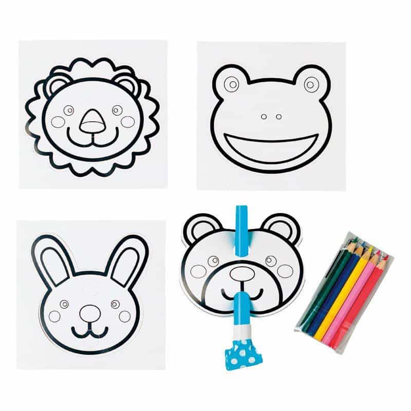 かわいい動物にぬりえが出来る面付吹き戻しです。