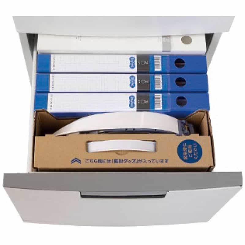 防災用ヘルメット(オサメット)と防災用品がひとつに…今まで別々に保管されがちであった2つの防災用アイテムがセットになり、収納力がよりUP!圧倒的にコンパクト設計で身近な場所にも収納(保管)ができ、持ち運びにも便利です。