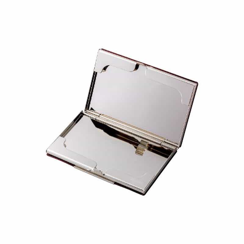 高級感溢れる希少なコードバンを表裏に使用した名刺入れ。表と裏はデザインが違い、お好みで使い分けが可能。中は鏡面磨きを施しており、身だしなみのチェックも出来る機能性も嬉しい。