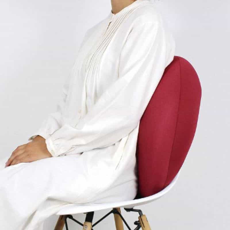 2つの穴が作り出すカーブとパウダービーズの流動性でS字姿勢が自然にとれます。上体を支えるので、長時間の座り姿勢をサポートします。