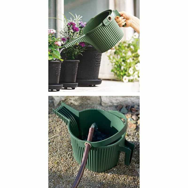 蓮口が無くても噴水のようなシャワー状の散水ができるガーデンビートル。1.5L・5L同色2個セット。持ち手の角度で水量を調節できるので、優しい散水と素早い散水が可能です。ジョウロだけでなく、バケツやフラワーベースとしても使えます。ハンドルには水を溜めやすいホースリング付き。オープンタイプで水が見やすく、液体肥料の希釈に便利なメモリ付き。日本製。