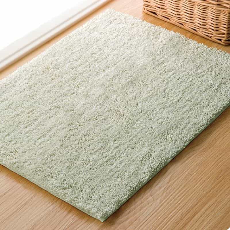 一見すると普通のバスマットだけど実はすごいバスマット。熟練した技術で1枚ずつ丁寧に手作りしています。「すごい」の秘密はみためでほとんどわからない2種類の糸。吸水速乾のポリエステル糸と抗菌防臭のアクリル糸2本の糸をツイストして1本に組み合わせることでへたりに強い弾力性のあるコシが生み出され、さらっとした足触りを実現しました。さらにうれしい防カビの機能をプラス。お洗濯後も乾きが早く、気軽に洗えます。