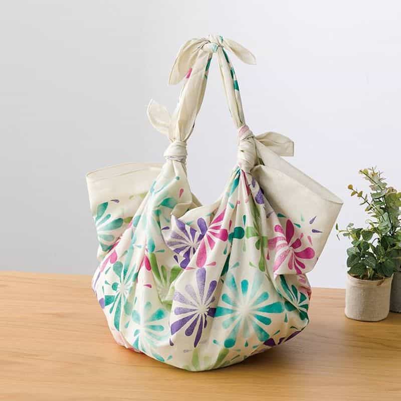 軽くて柔らかい綿ふろしきに撥水加工を施したふろしき。ものを包むだけでなく、結んでエコバッグにしたり、ストールやショールのように使ったり、インテリアに使ったり、様々な用途で暮らしを彩ります。アウトドアのお供や防災用途にも。