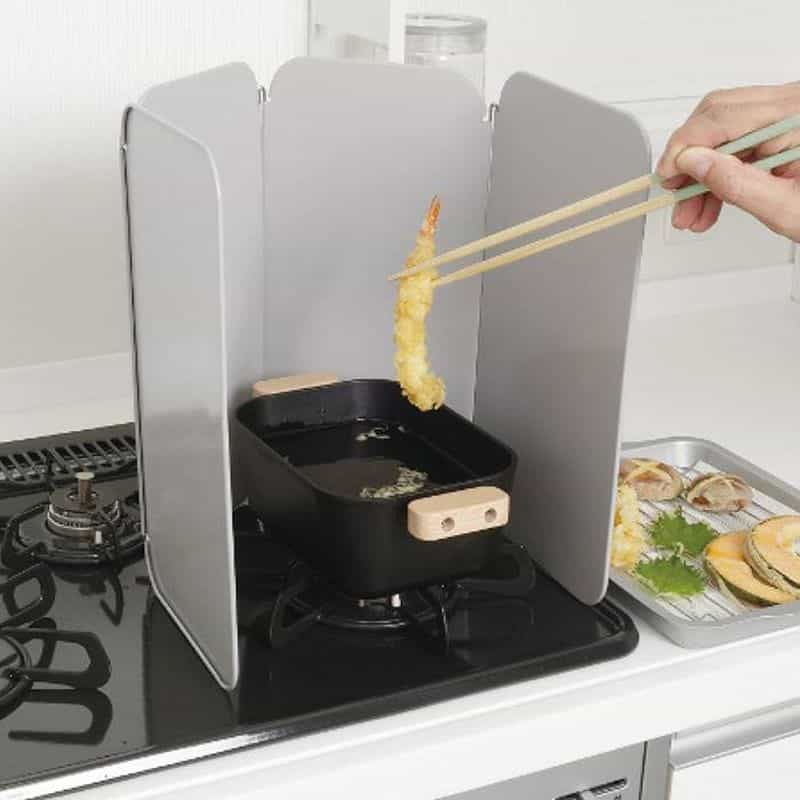 4枚パネルが鍋やフライパンを囲むので、油やソースの飛び散りをガードします。折りたたんでコンパクトに収納できます。