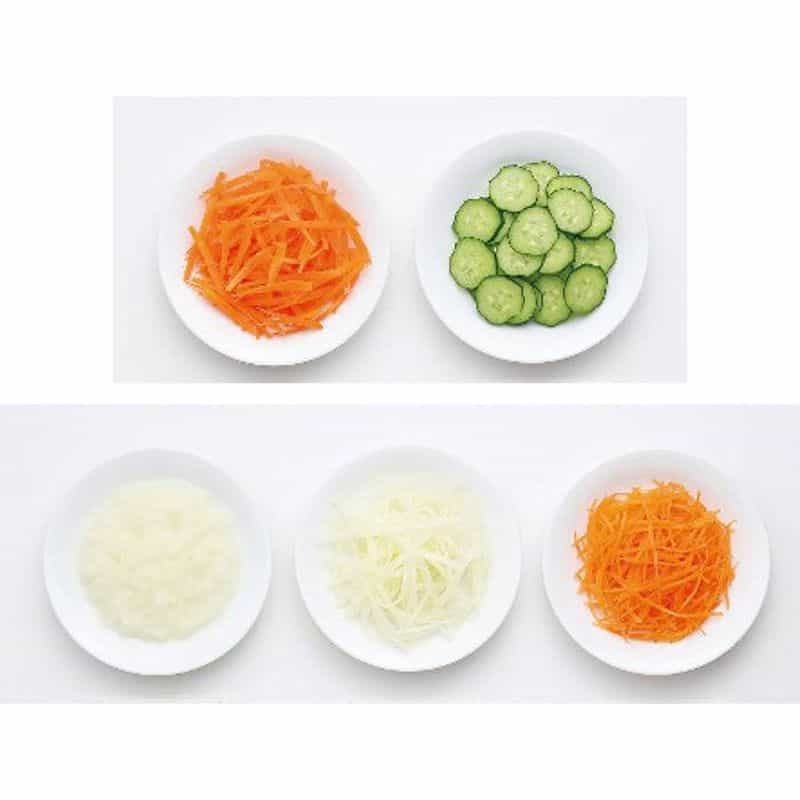 ハンドルを引くだけで、簡単にみじん切りができる便利グッズ。5枚刃なので、パワフルかつスピーディー。ハンドルを引く回数によって、仕上がりを微調整できる。また付属のパーツを使えば【薄切り】【薄千切り】【千切り】【つま切り】【おろし】もできてマルチに活躍!!