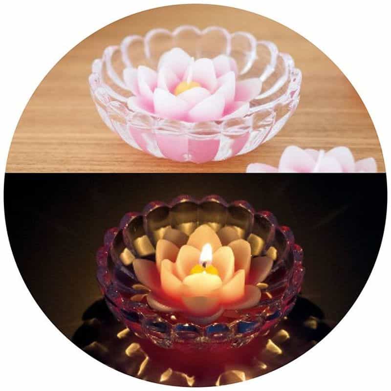 「祈る心」をお伝えしたいけれど、相手に気を使わせたくないという方から選ばれる紙箱のご進物。清らな哀しみを表現した色使いと繊細な蓮のローソクが美しく、白檀を基調としたフローラルの香りのお線香(煙少香)が、贈られる方をやさしく包み込みます。蓮のローソクは職人手作りのフローティングキャンドル。付属のガラス燭台に水を入れて浮かべると、ローソクの灯火がゆらゆらと揺れて見る方の心を癒します。