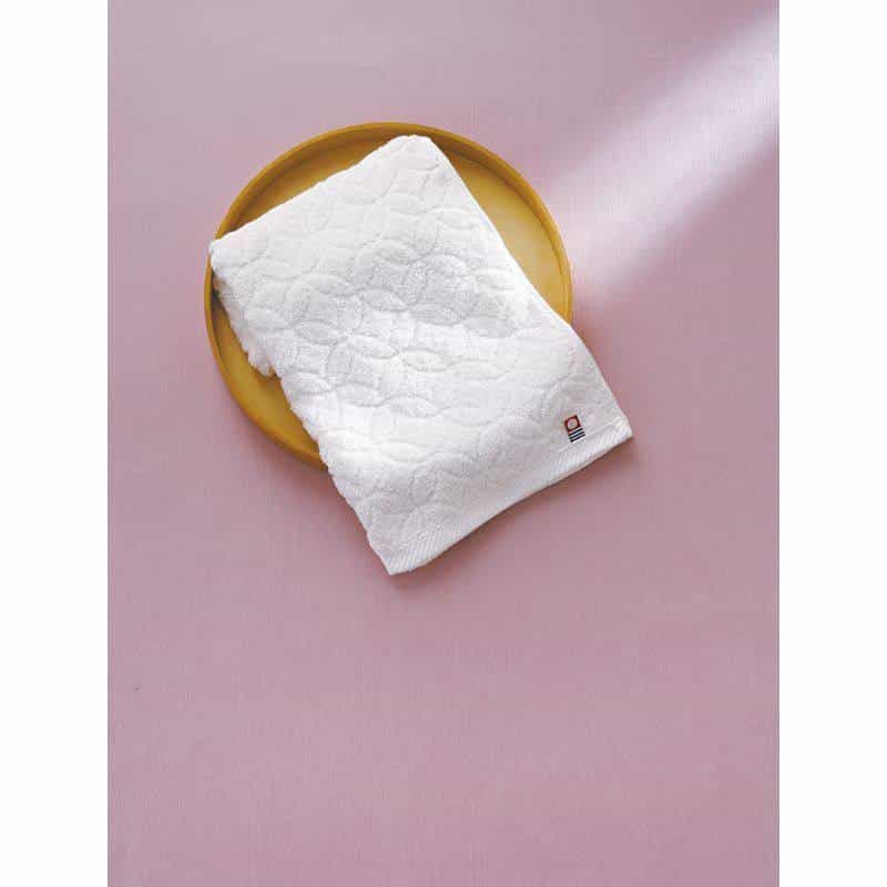 伝統文様をあしらったふんわりとした肌ざわりのタオル 日本古来より伝わる縁起柄 【七宝】をモチーフに今治自慢の紋織技術で織り上げました。