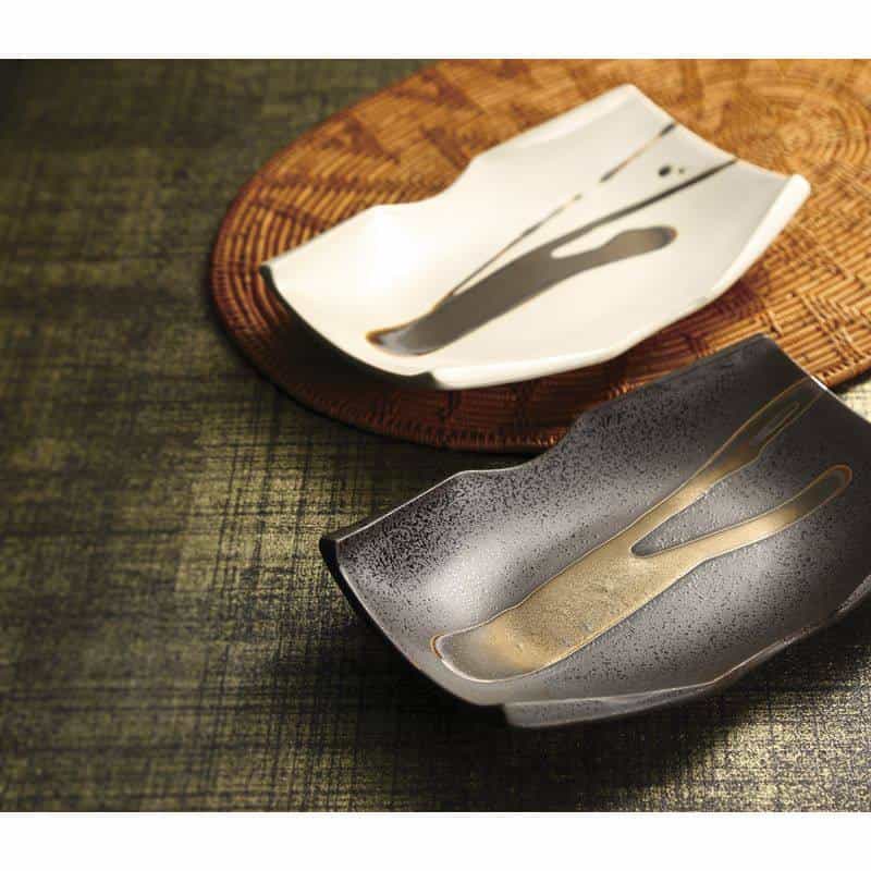 大胆に職人が金彩の筆書きをして絵付けをしておりますお皿は個性豊かでそれでいて様々な食材を華やかに盛り付けできます。