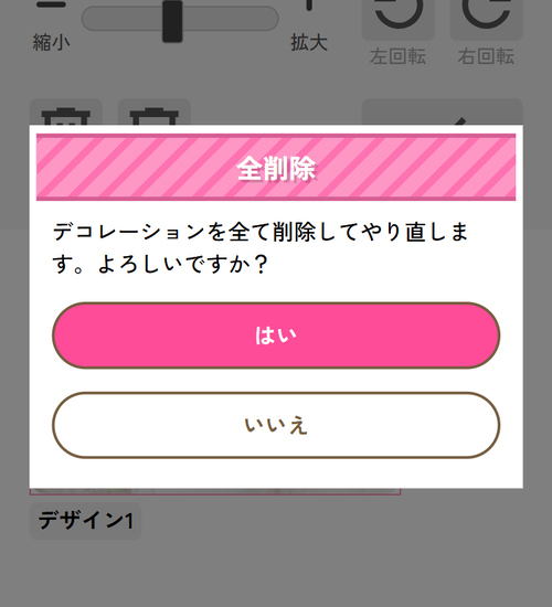 【文字】ボタンから入力した文字を入れることができます。縦書き・横書きを選択してテキストを入力します。その後お好きなフォントとカラーを選択し【メッセージを入れる】をタップ(クリック)すると、デコレーションエリアに入ります。また、【ふちどり】にチェックを入れると文字に白いふちが付きます。デコレーションエリア内にあるメッセージは、自由に拡大縮小・回転等の調整が可能です。