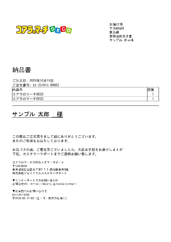ご注文情報はDecotoサイトの購入履歴よりご確認いただけます。